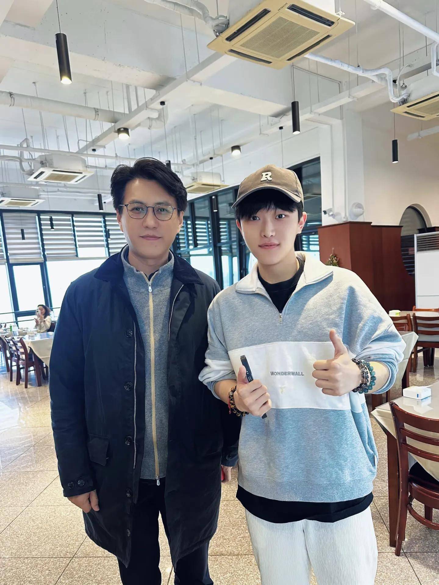 在食堂里,他也被学弟遇到了,完全不会觉得尴尬,很接地气!